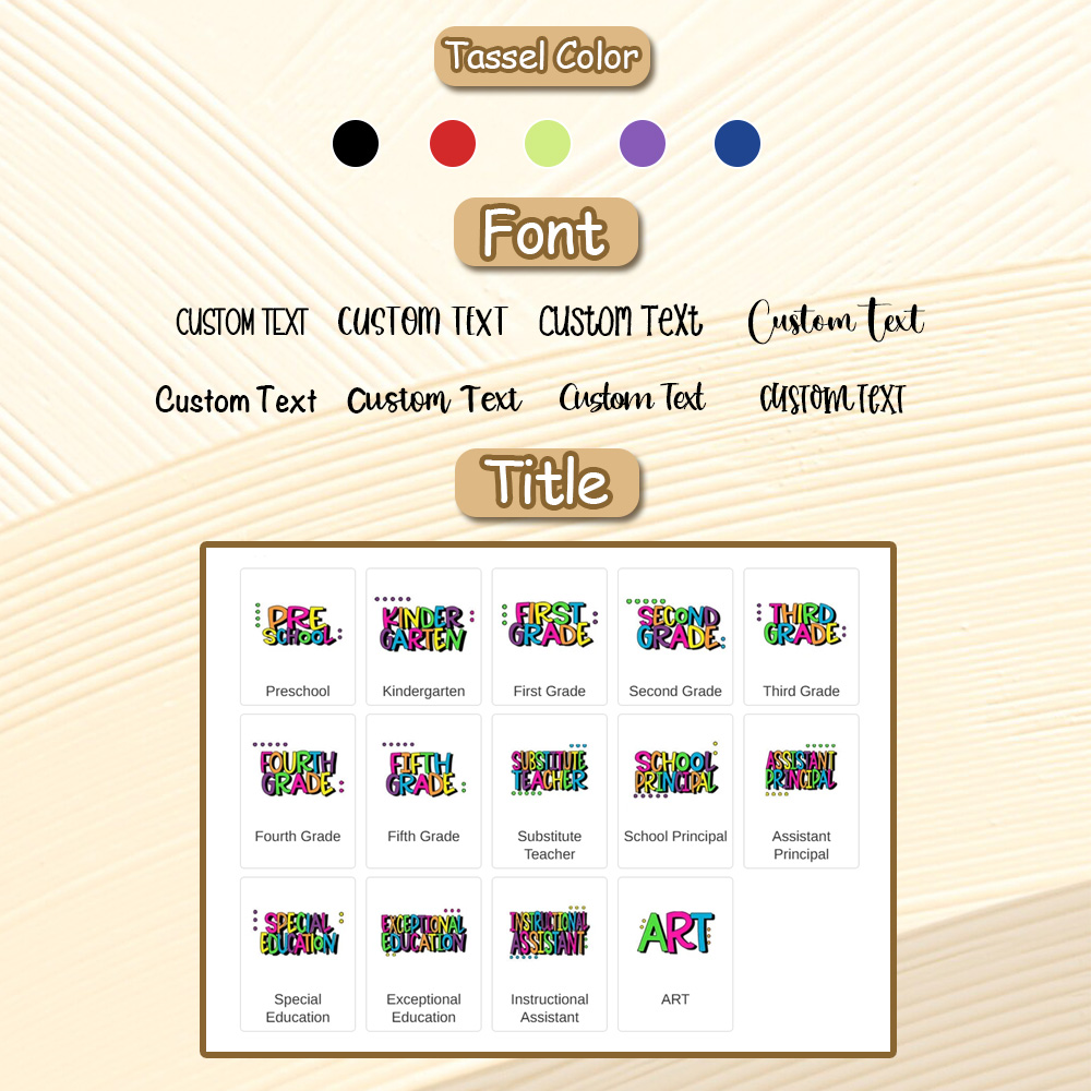 | Tassel Color | Purple, Black, Red, Green, Blue |