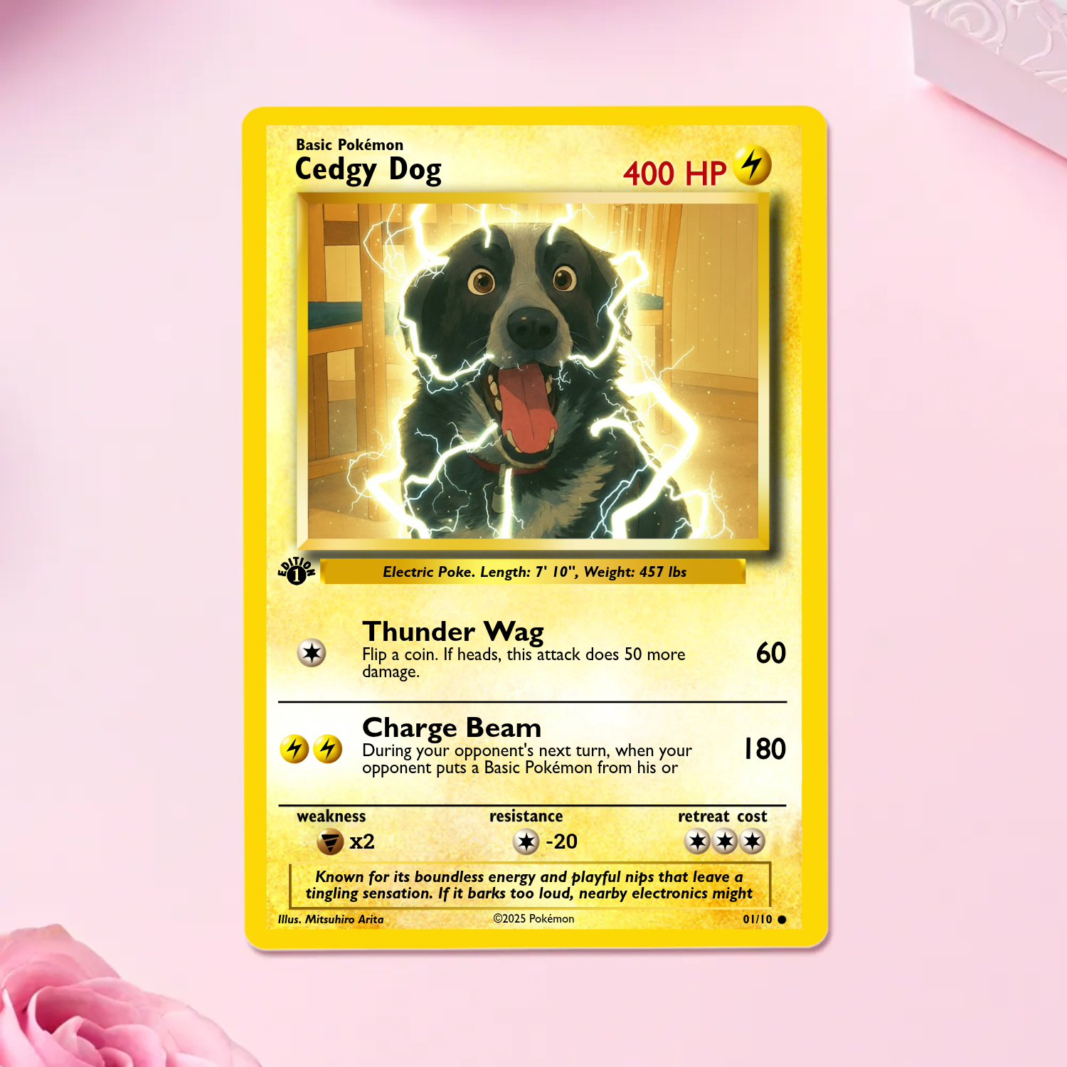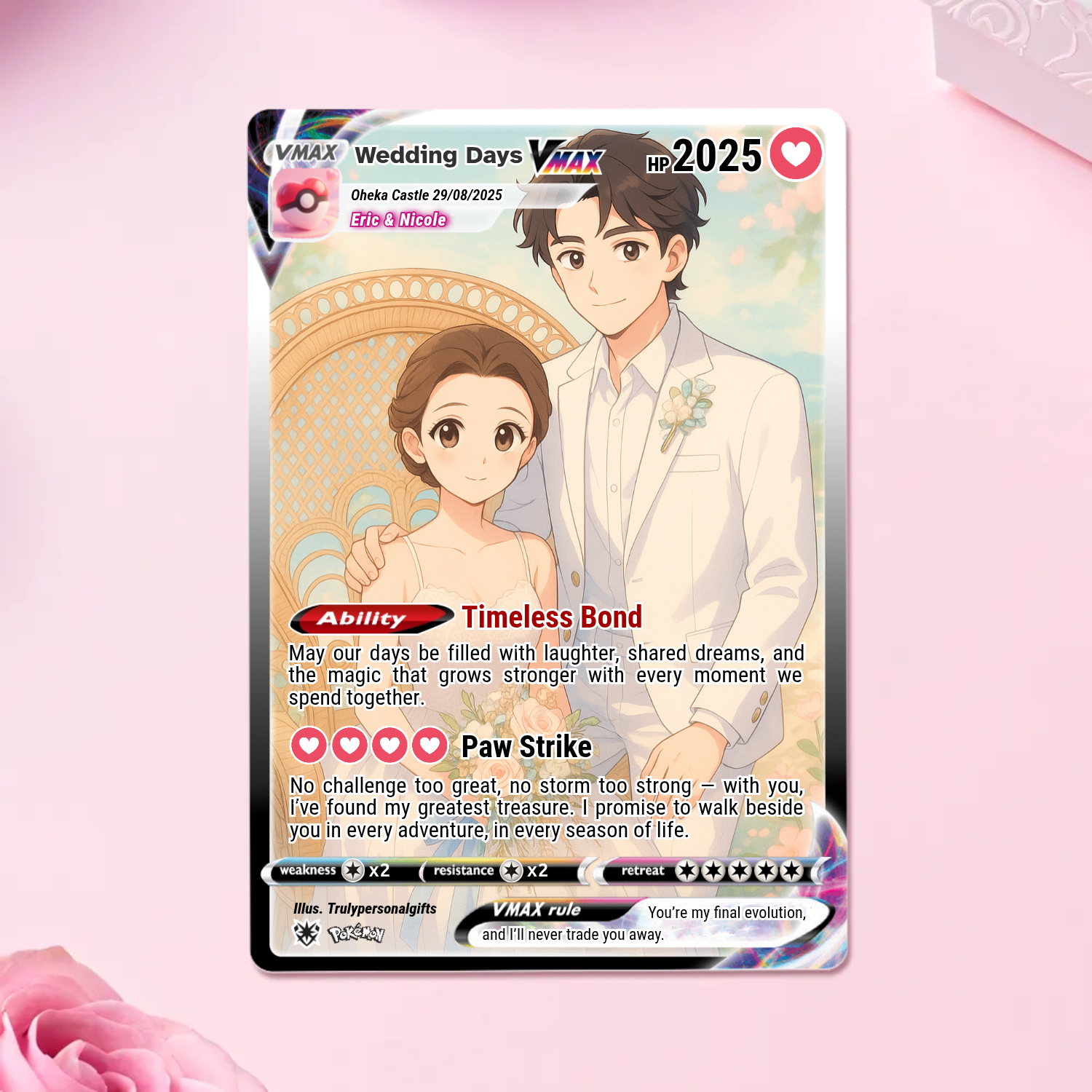 Upload your photo and use our visual editor to add custom text, HP, and attacks.